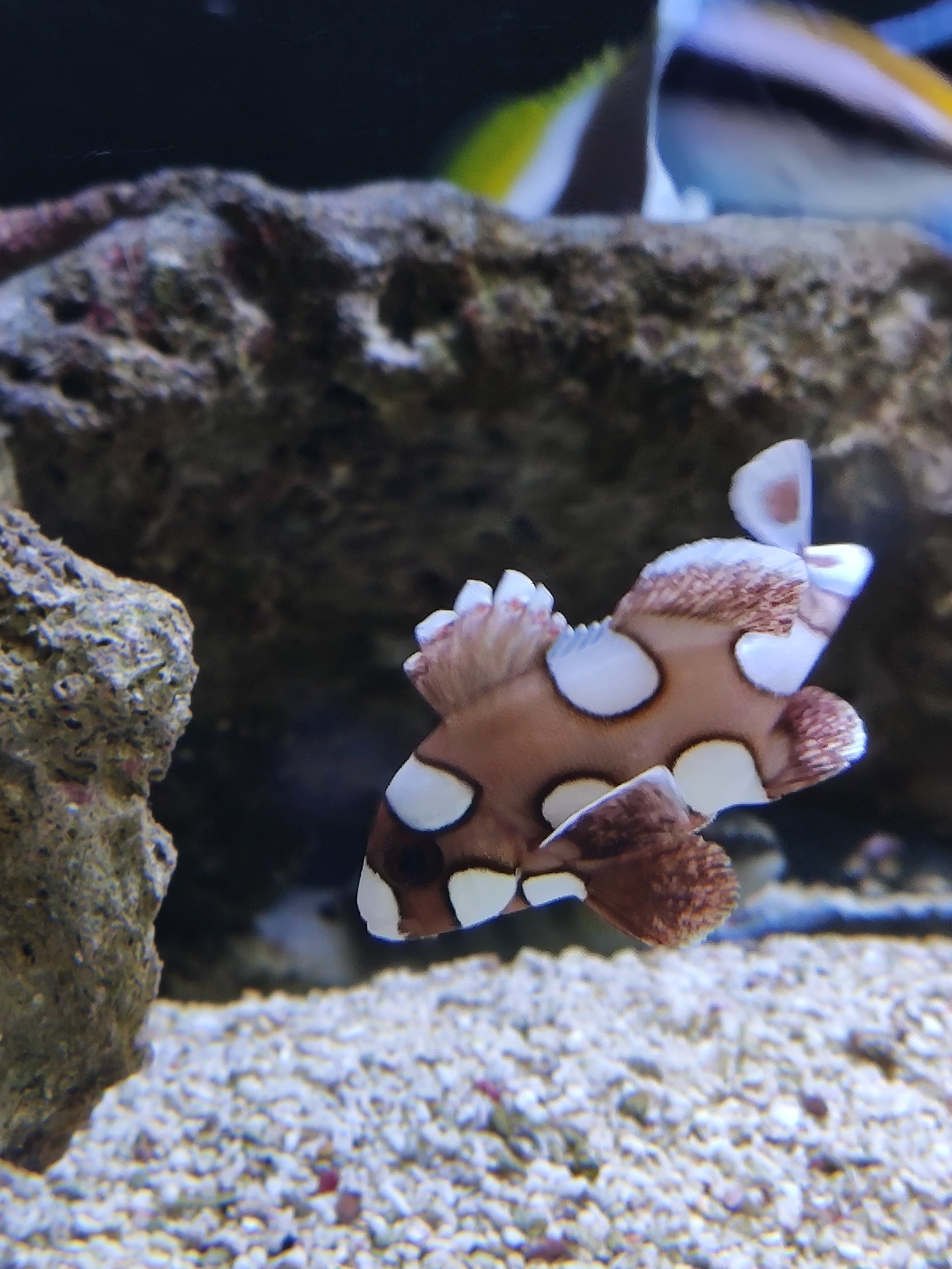 Le gérant nous a vendu un poisson avec des taches blanches soit disant « stressé ». Nous avons trouvé cela bizarre mais nous lui avons fait confiance. Nous achetons des poissons depuis plus de 20 ans et c’est la première fois qu’un poisson présente des taches blanches à l’achat. Le poisson est mort 2j plus tard.