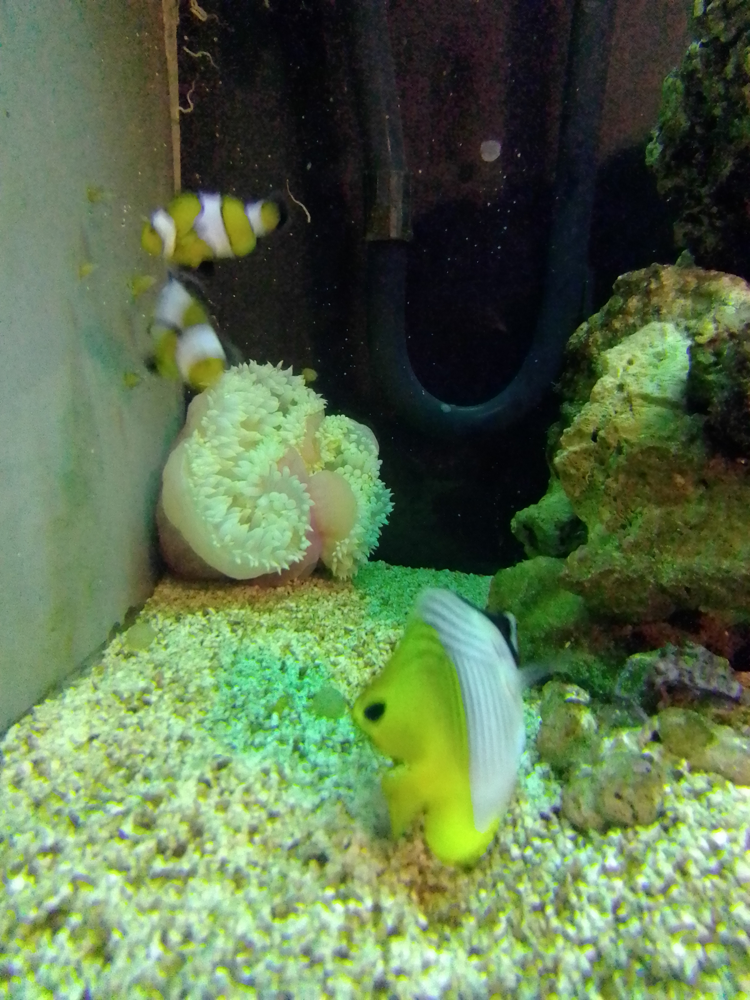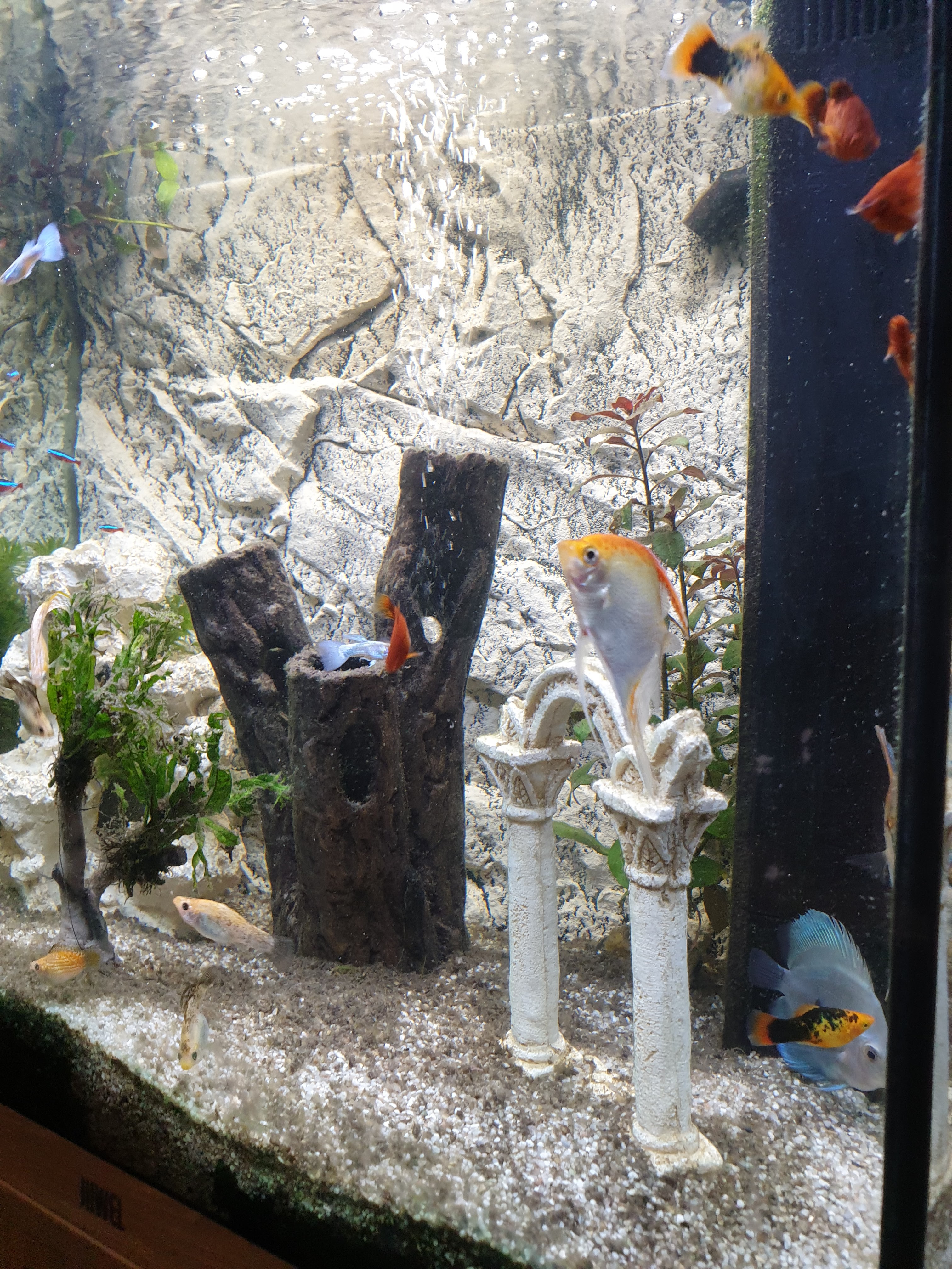 Pas d'aquarium eau de mer et pour info le xypho devient mâle quand population trop nombreuse une vendeuse qui sait pas ca j'ai des doutes pour le reste désolé